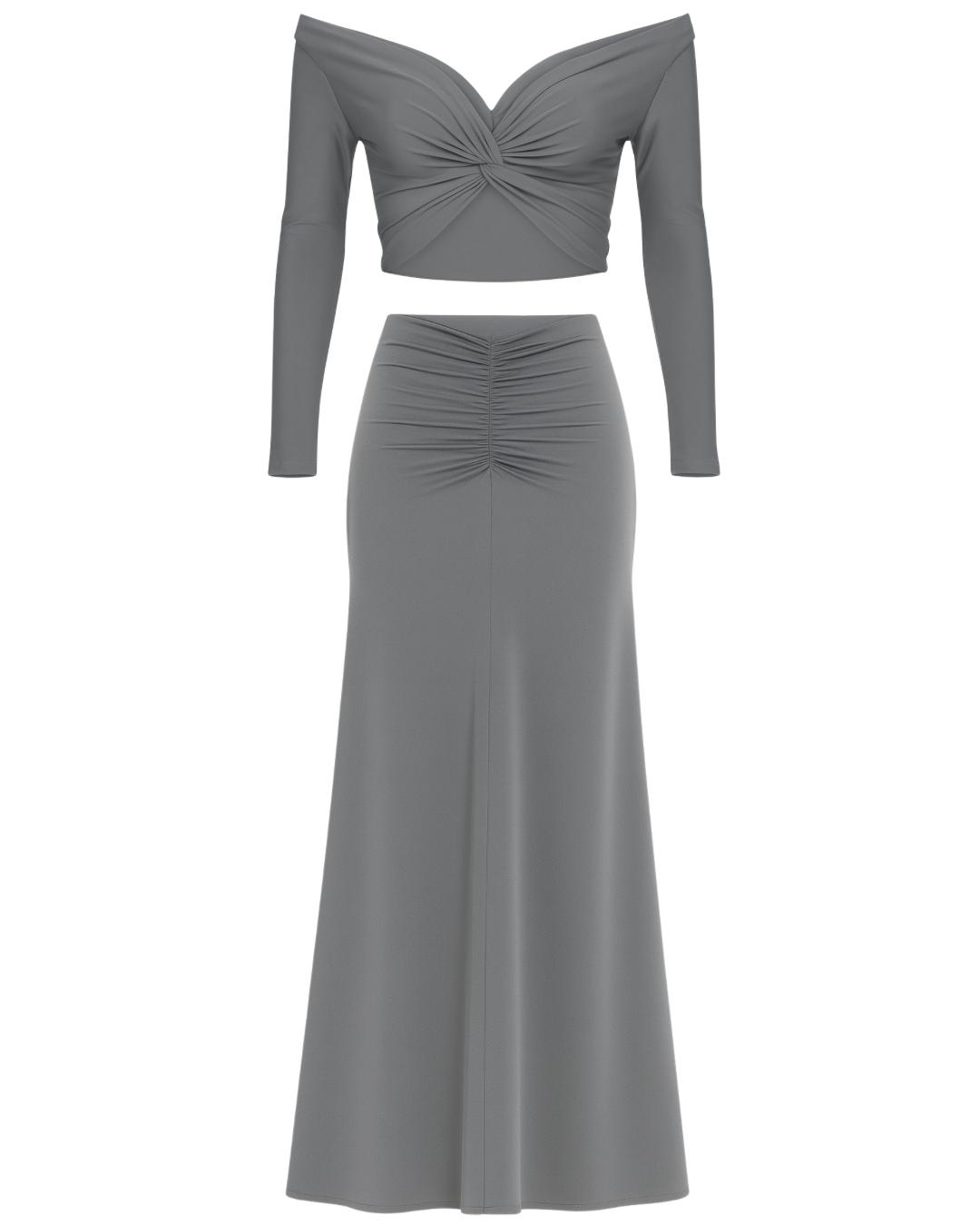 Дългата пола CHLOÉ оформя издължен силует с централно набиране, което придава меко движение и подчертава талията по семпъл, чист начин.