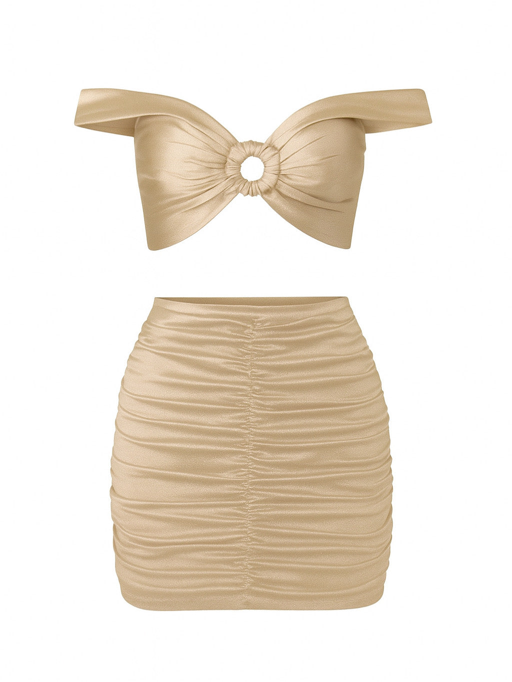 Noē не е просто сет, а настроение. В нежния бежов цвят той носи усещане за топлина и изтънченост – като залез, който никога не искаш да свършва. Еластичната материя обгръща тялото с лекота, а фините детайли подчертават естествената женственост. Noē е изборът на жената, която обича да оставя следа – елегантна, смела и запомняща се.